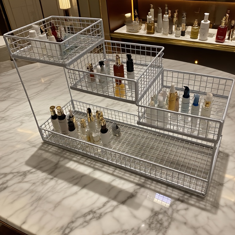 TEMU 투명 선반이 있는 멀티 티어 화장품 정리대 - 튼튼한 욕실 화장대 수납 선반, 공간 절약형 메이크업 정리대 (여성용, 화장대, 사무실, 기숙사) - 우아한 화이트 마감, 메이크업 화장대, 세련된 디자인, 고품질 마감, 뷰티 애호가, 향수 정리대