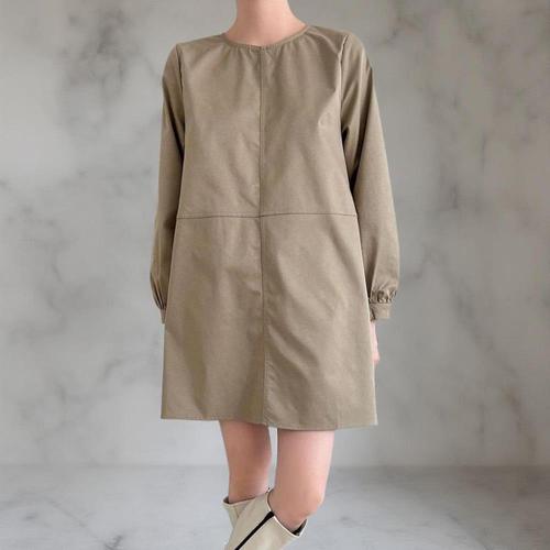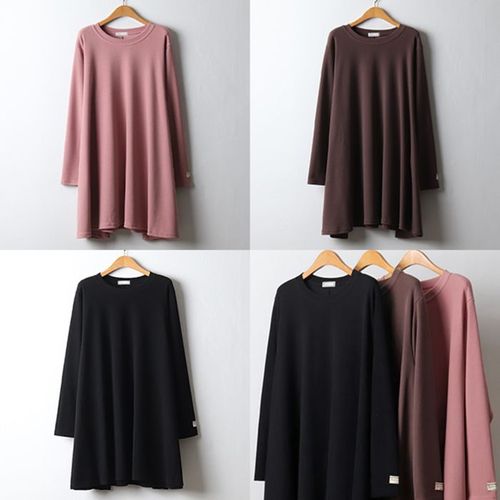 [유야]캐주얼 면 무지 라운드 긴팔 플레어 미니 원피스 키작녀원피스 롱티 -OP0412H- 빅사이즈 루즈핏 여..