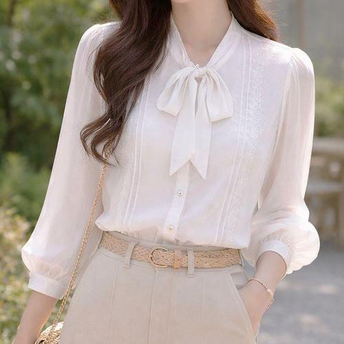 [블랙퀸]리본타이 미니레이스 블라우스 blk004596