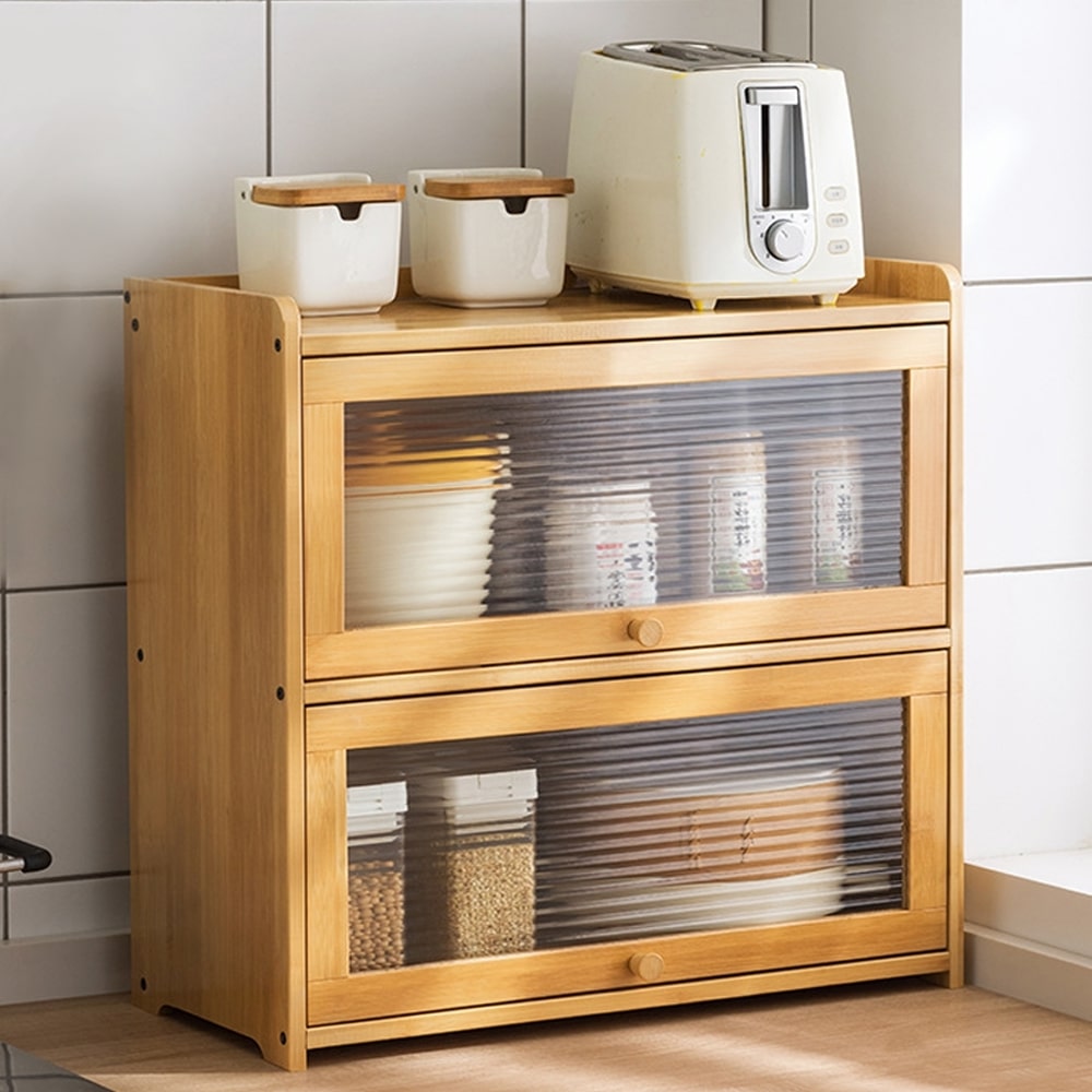 다용도 주방수납장 주방 접시 수납장 3단 선반장 식기선반, 원목색