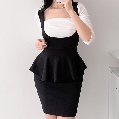 구디프 여성용 페플럼 V넥 슬림핏 원피스 하객룩 오피스룩 투피스 디자인