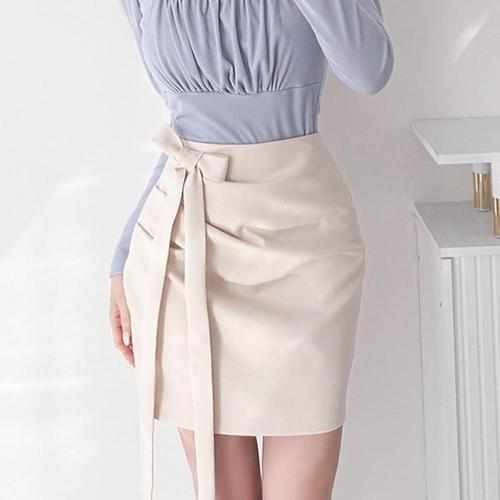 [신상오픈런]리본 롱타이 드레이퍼리 엿셔링 미니스커트 펜슬 (30487349)