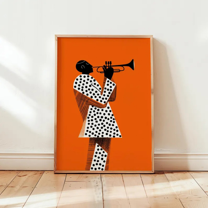 TEMU 2D 플랫, 2D 플랫, 1개 현대 재즈 트럼펫 연주자 아트워크: 오렌지 및 블랙 음악 테마 벽 포스터, 가정 장식용 캔버스 그림, 액자 없음