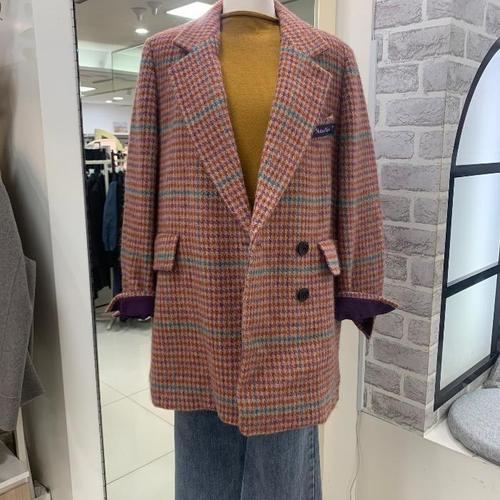 미센스 DP01 체크 알파카 중기장 자켓 모직 자켓, 알파카 자켓, 루즈핏자켓