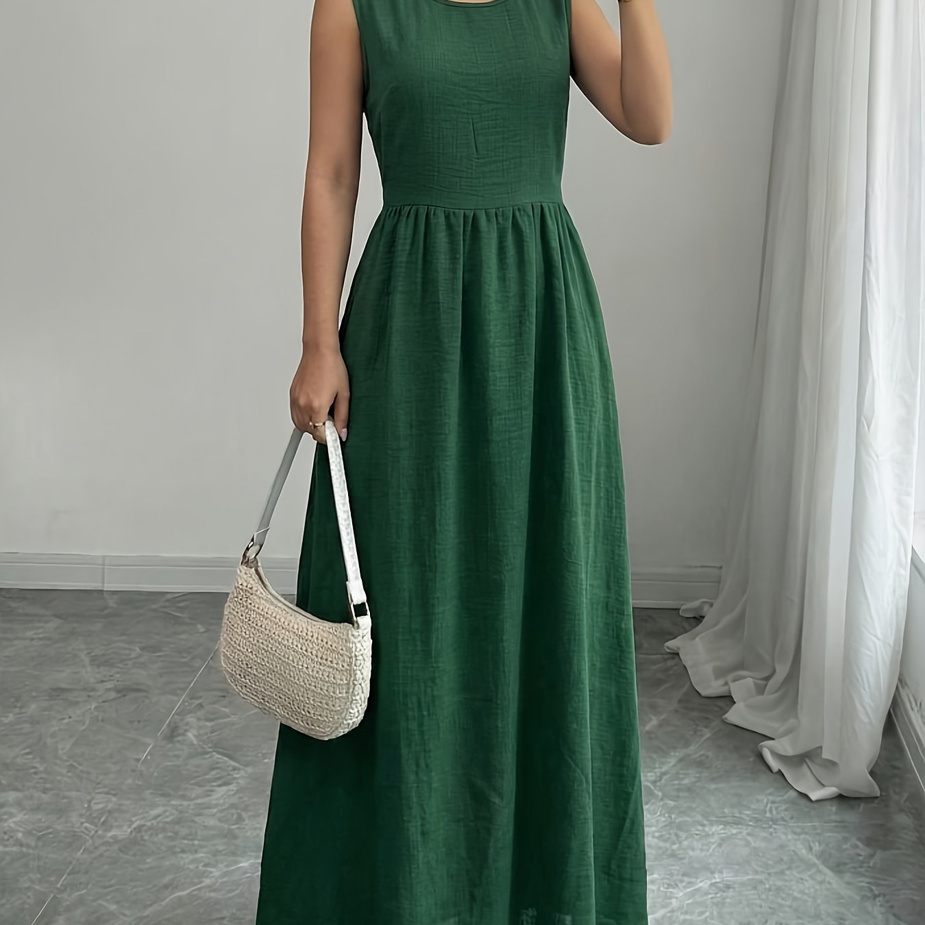TEMU 여성용 단색 롱 드레스, 여름에 완벽, 캐주얼 및 포멀한 모든 행사에 적합, 포켓과 아름다운 디자인, 세탁기 사용 가능