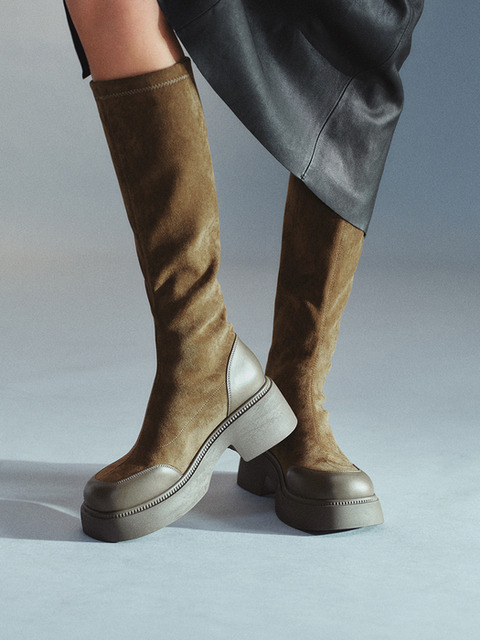 스웨이드롱부츠 스웨이드 미들굽 롱부츠 데일리 패션 여성부츠