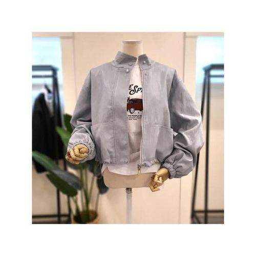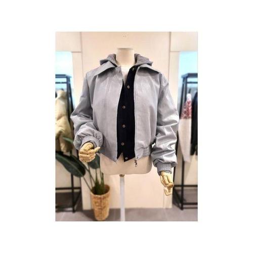 [미스칸트]KNLTQ203GR 카라 집업 레더 자켓 그레이