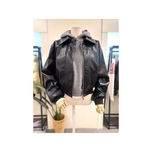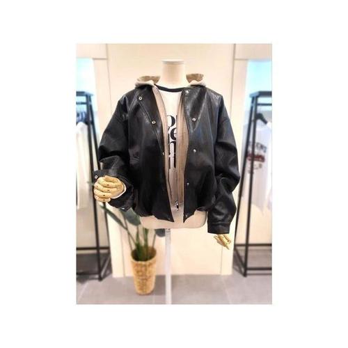 [미스칸트]KNLTQ209BK 후드 집업 가죽 자켓 블랙