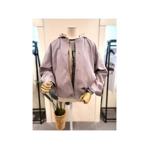 [미스칸트]KNLTQ208PP 후드 집업 가죽 자켓 퍼플