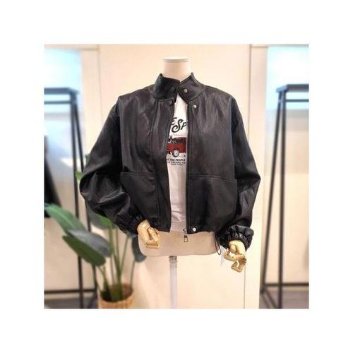 [미스칸트]KNLTQ203BK 집업 카라 레더 자켓 블랙