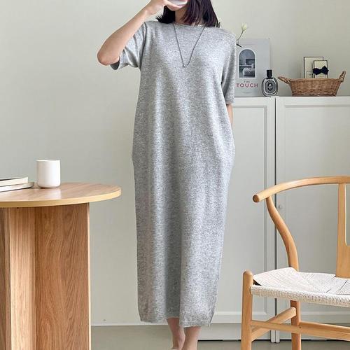 바나나2 라운드넥 슬림핏 옆트임 골지 반팔 롱원피스 3color