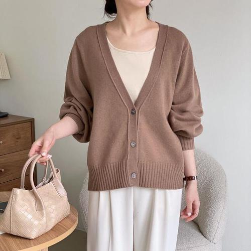[신상오픈런]브이넥 세미루즈핏 미시룩 등원 출근 울가디건 커버업 (31862542)