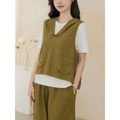 [드리다] 여성 여름 린넨 마 조끼 가벼운 여름용 캐주얼 베스트 40-50대 엄마옷 미시룩 중년여성 55-77