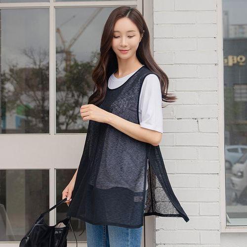 [드리다]여자 여름 시스루 빅사이즈 스판 레이어드 조끼 베스트 40-50대 미시 중년여성 엄마옷 캐주얼 모..