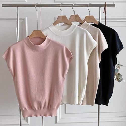 [신상오픈런]슬리브리스니트 시보리 모크넥 미시룩 돌만 봄조끼 (30100044)