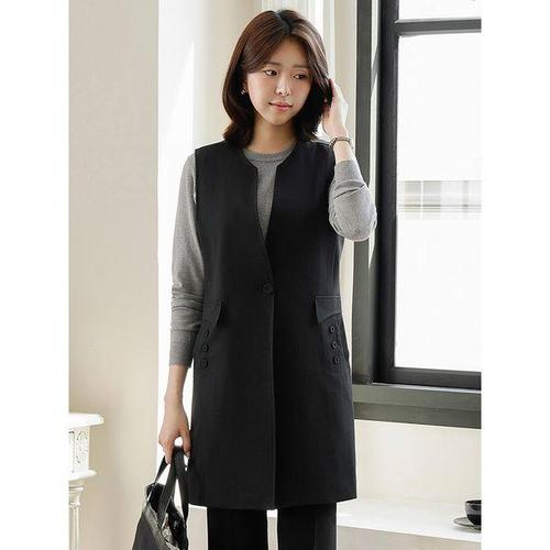 [드리다]여성 가을 노카라 모던 빅사이즈 정장 롱 베스트 조끼 40-50대 미시 중년여성 엄마옷 하객 상견..