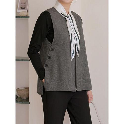 턴키 여성용 언발 니트 스판 브이넥 베스트 AE-1212