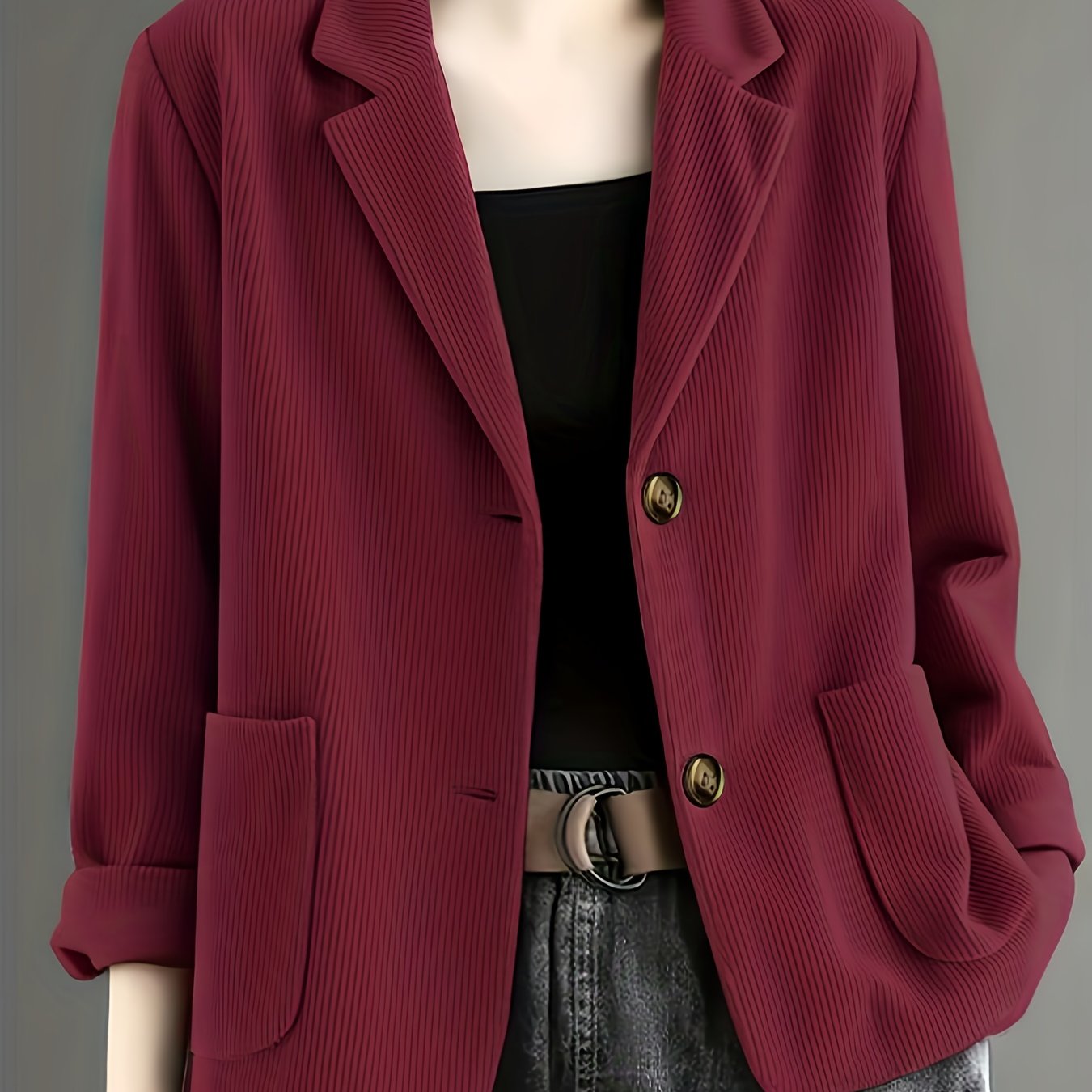 TEMU 여성용 버건디 레드 재킷 - 스트럭처드 칼라 롱 슬리브 테일러드 핏 프로페셔널 & 캐주얼 아우터웨어, 세탁기 사용 가능 봄 여름 가을 코트, 오피스, 비즈니스 또는 캐주얼 복장용 (번호 없음)