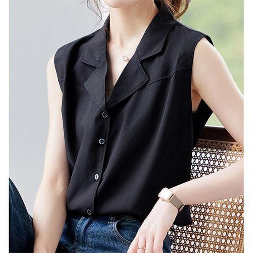 쪼예 썸머 카라 민소매 셔츠 블라우스