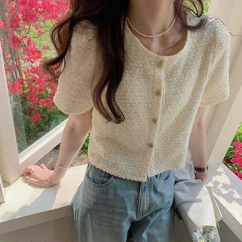 보니제이 / 크롭 남방셔츠 여름 여성 카라넥 아방핏 민소매 셔츠