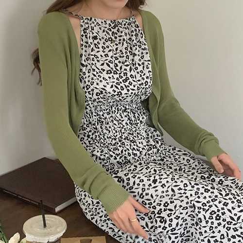 슈팅스타 / 플라워패턴 끈나시 원피스 여름 니트 가디건 288091