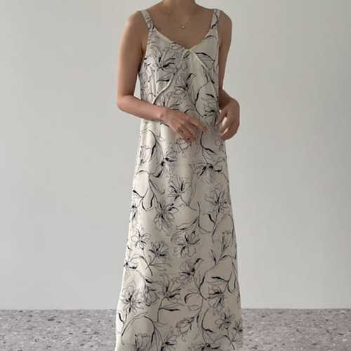 이유무무 NQ-238 플라워 나시 A라인 플레어 롱 원피스