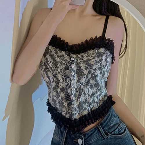 슈팅스타 / 플라워패턴 크롭 레이스 나시