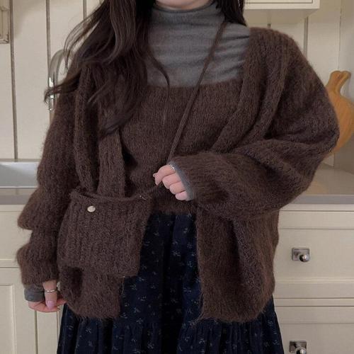 [엘루이즈][엘루이즈] [3SET/도톰] 플레느 울 가방 나시 니트 가디건 세트(3color)
