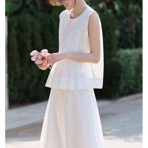 Latium HC06 신축성 좋은 플리츠 민소매 언발 주름 나시 티블라우스 T2523bl36P