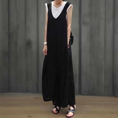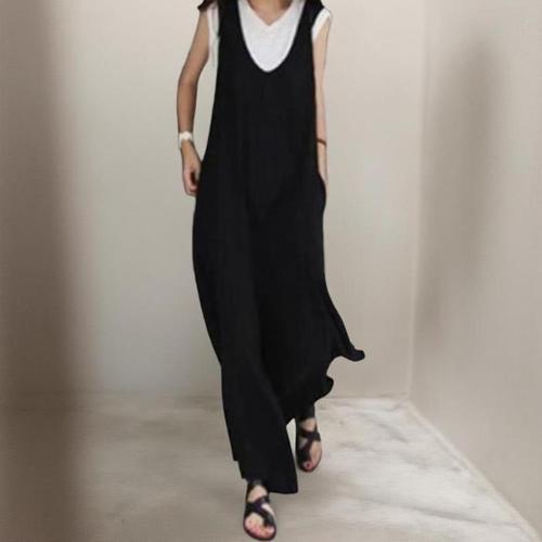 [신상오픈런]여성용 캐주얼 와이드핏 점프수트 딥 브이넥 뒷지퍼 디자인 (42009536)