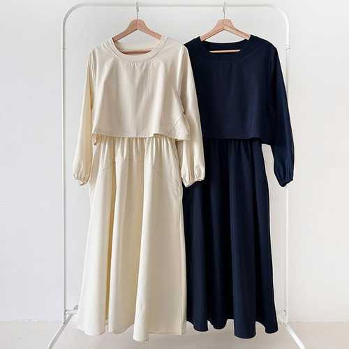 옷자락 / 여성 가을 캐주얼 퍼프소매 롱 원피스