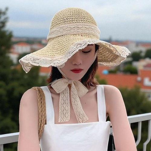 밀짚 리본 버킷햇 여성 여름 벙거지 여행 사파리 모자 WFH0ZDR