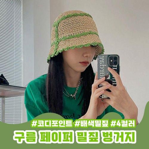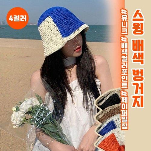 [셀러허브_여성트랜드패션]모자 휴가 물결 배색 밀짚 벙거지 왕골