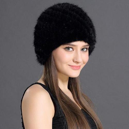 2025 패션 뜨거운 전체 밍크 모피 Pompons와 여성 겨울 우아한 럭셔리 고품질 숙녀 비니