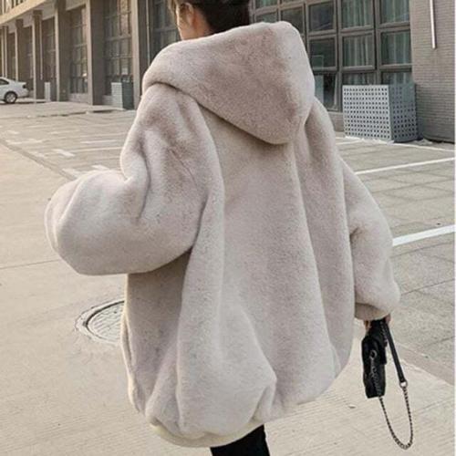 [셀럽하우스]캐주얼 XOMM9378 여성 오버핏 페이크 밍크퍼 후드 집업 자켓
