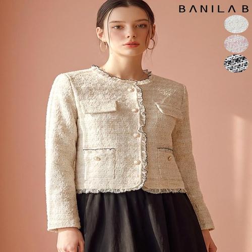 [바닐라비]여성 레이스 프릴 트위드 자켓