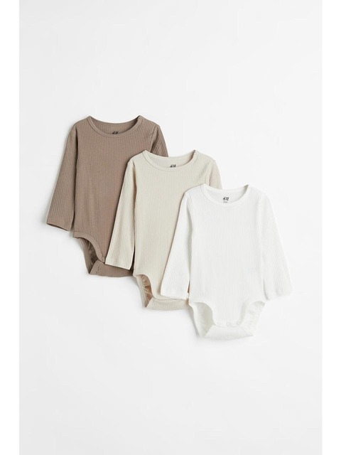 [에이치엔엠] 리브드 바디수트 3피스 세트 그레이지/라이트 베이지 0993598013