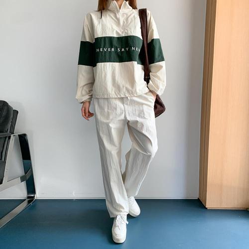 [다잇템][다잇템] 여성 바스락 하프집업 콘트라스트 캐쥬얼 바지 세트_23092211_588872
