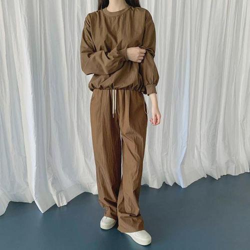 [옷자락] 여성 스트릿 스타일 바스락 맨투맨 와이드 팬츠 세트