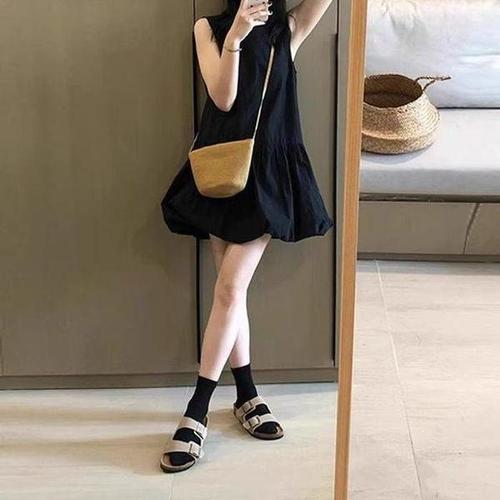 [셀러허브_여성트랜드패션]ONM VOOY 라운드넥 나시 민소매 바스락 미니원피스