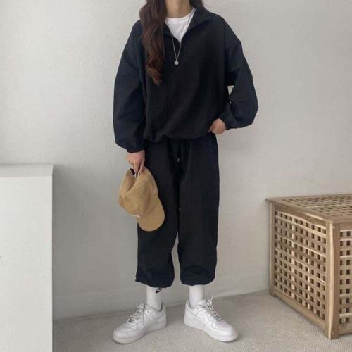 [셀럽하우스]여성 CIJR1508 바스락 반집업 맨투맨 조거팬츠 트레이닝복 세트