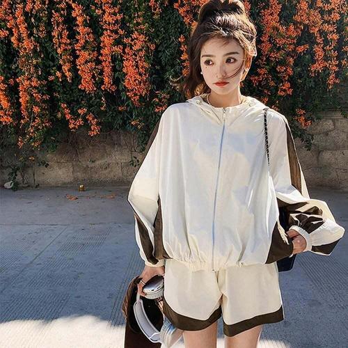 [에이치플러스몰]루즈핏 바스락 후드 집업 반바지 트레이닝복 세트