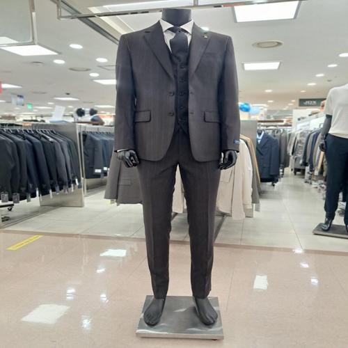 [바쏘옴므]정장 울 100% 스트라이프 이태리 클레식수트 슬림핏 차콜 3P Y3JT09-2