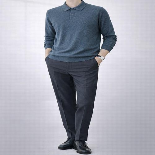[바쏘옴므]남성 울캐시미어 슬림핏 니트 카라티 WSZ4-WT71-ABU