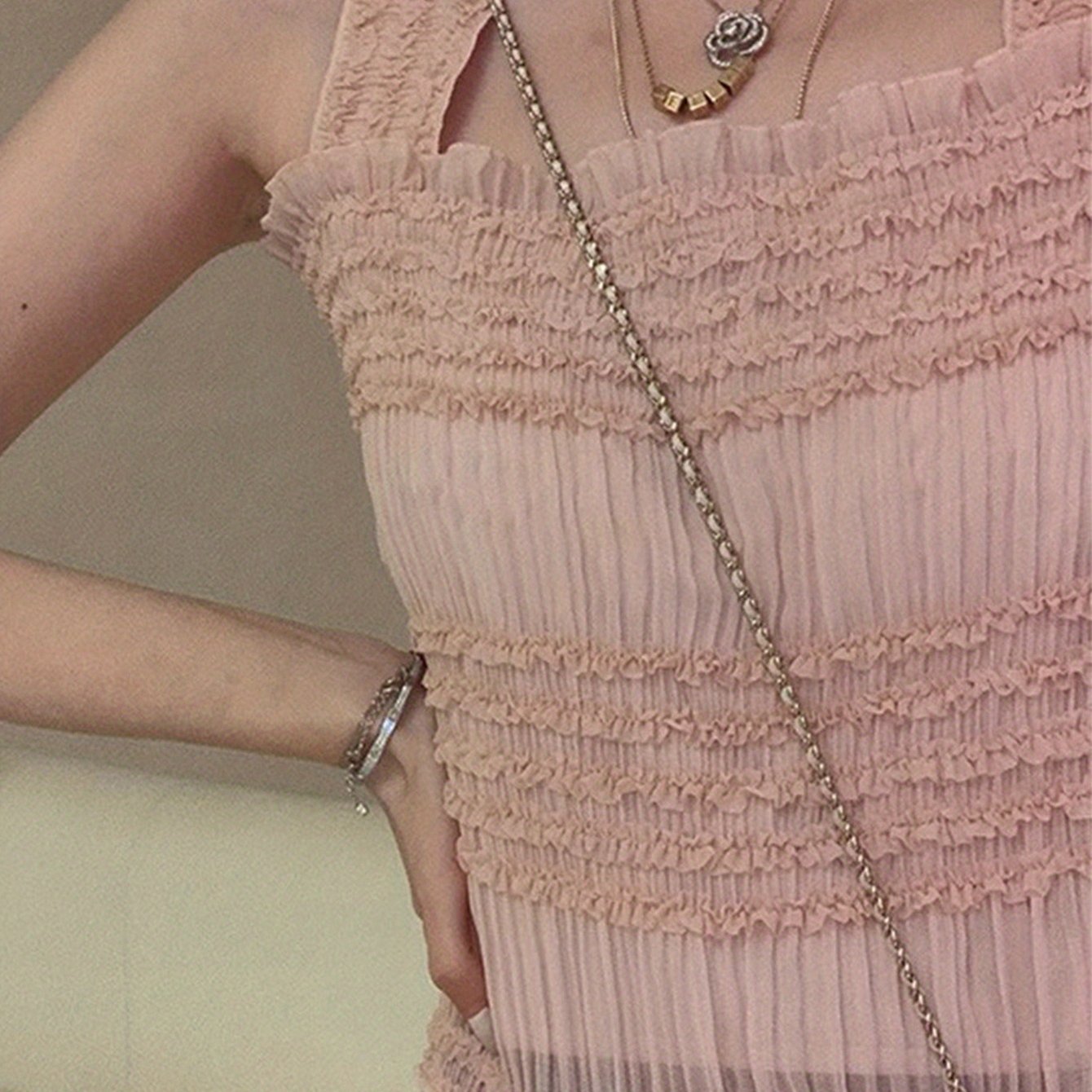 TEMU 여성용 봄/여름 얇은 주름 소재 민소매 나이트가운 (패드 브라 포함) 홈 슬립웨어