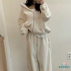 쪼예 [투피스] 도톰 플리스 기모 투웨이 후드 집업 밴딩 팬츠 세트