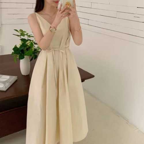 슈팅스타 / 브이넥 허리 스트랩 바캉스 비치룩 민소매 원피스