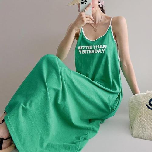 [신상오픈런]여성 바캉스 원피스 레터링 디자인 끈 나시 롱드레스 (38631799)