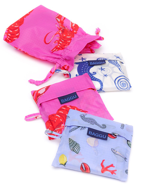 [바구] [바쿠백] 휴대용 장바구니 접이식 시장가방 Sea Creatures 3종 세트
