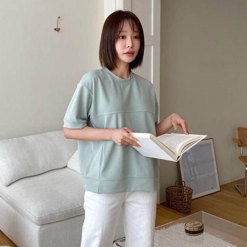 [에이치플러스몰]여성반팔티 크롭맨투맨 여성티셔츠 포인트 바크텐